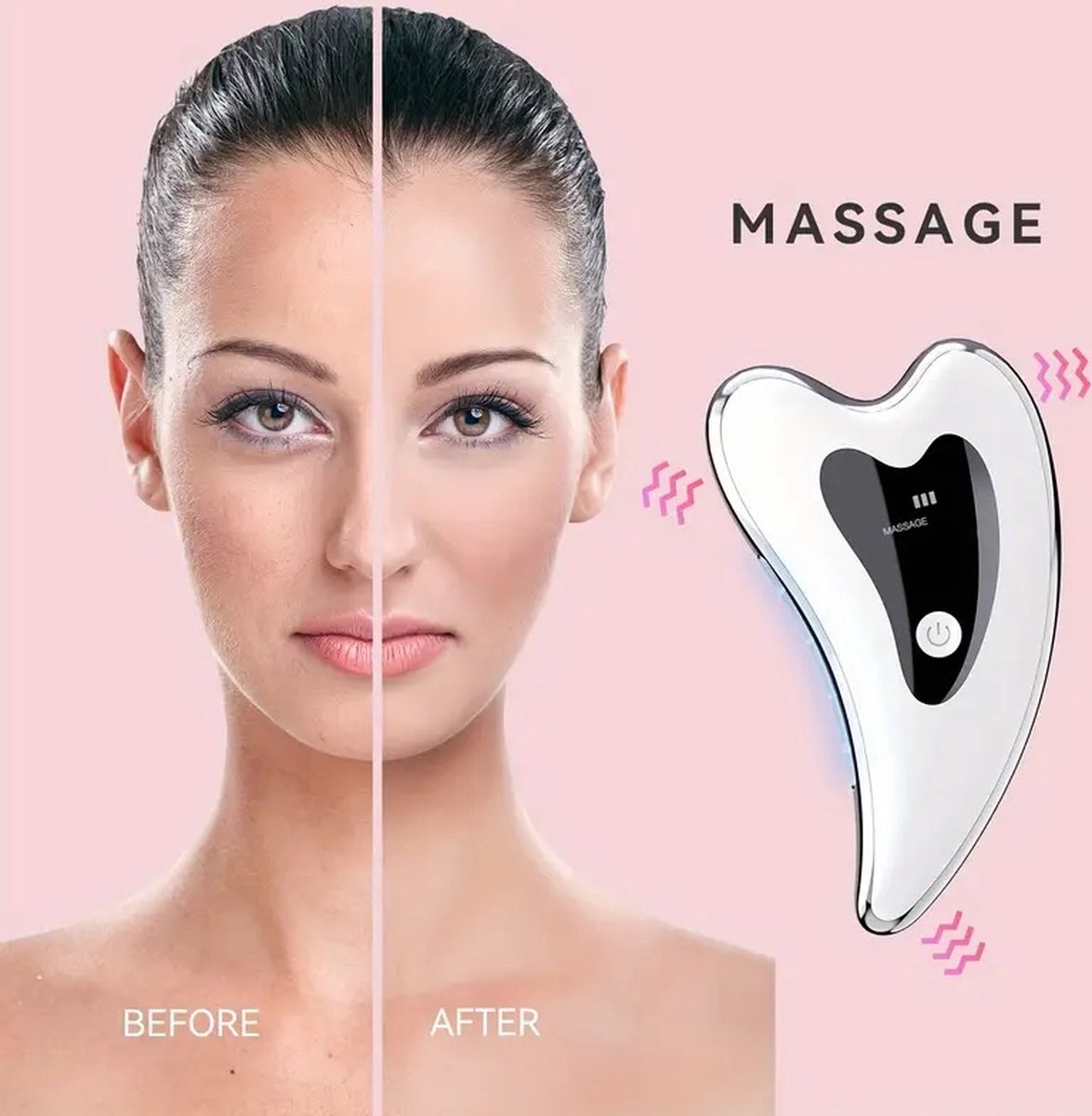 Modelleer, lift en laat uw huid stralen met de elektrische Gua Sha-gezichtsmasseerder.