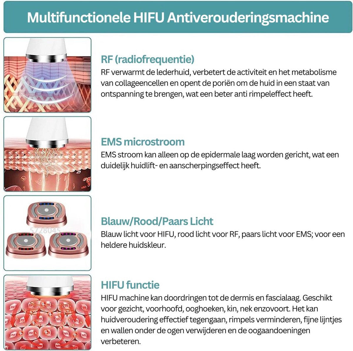 Radiofrequentie-technologie zendt miljoenen microgolven per seconde uit die de huid diepgaand verwarmen.